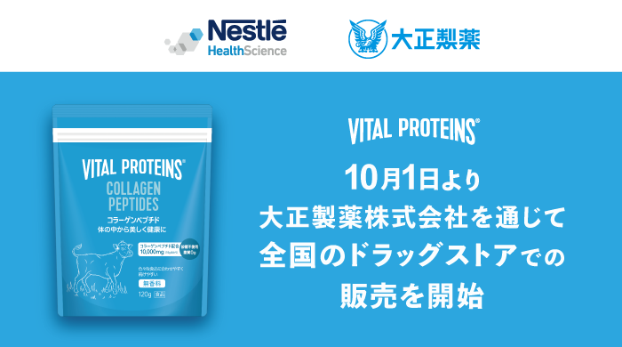 Newsroom Share with your network Facebook Twitter LinkedIn RSS Filter Area of ExpertiseNew productsSeminarsResearchEventBusinessHealth claim Date Published202520242023202220212019201820172016201520142011 Apply Wed, 10/01/2025 - 13:00 「バイタルプロテインズ」大正製薬株式会社との販売提携により、2025年10月1日(水)より全国のドラッグストアでの販売を開始 Business Thu, 09/18/2025 - 14:00 「アイソカル® 100 すっきりフルーティー」新発売!ラズベリー・青りんごの2フレーバー100ml飲み切りで200kcal。栄養補給が手軽に New products Mon, 09/08/2025 - 14:00 ネスレの「バイタルプロテインズ」、『ミス・グランド・ジャパン2025※1』ファイナリスト向けにコラーゲン勉強会を開催 Event Fri, 09/05/2025 - 14:00 ネスレ「バイタルプロテインズ」、世界王者チアダンス部「SPARKS」を栄養サポート Event Fri, 08/29/2025 - 14:00 ネスレ ヘルスサイエンス、第31回日本摂食嚥下リハビリテーション学会学術大会にてランチョンセミナーを共催 Seminars Mon, 07/14/2025 - 04:00 佐々木 希さんが「バイタルプロテインズ」のブランドアンバサダーに就任!“キレイもこころも内側から整える”新ブランドムービーを公開! Business Tue, 07/01/2025 - 14:00 ネスレの「バイタルプロテインズ」、「mi-mollet(ミモレ)」創刊10周年を記念し、“美容たんぱく部”を応援! ―「10年後の、もっと美しい私へ!」― Event Fri, 06/27/2025 - 14:00 ネスレ ヘルスサイエンス、北海道で「アイソカル®」のテレビCM放映等を開始 Business Pagination 1 2 3 Next › Next page Last » Last page